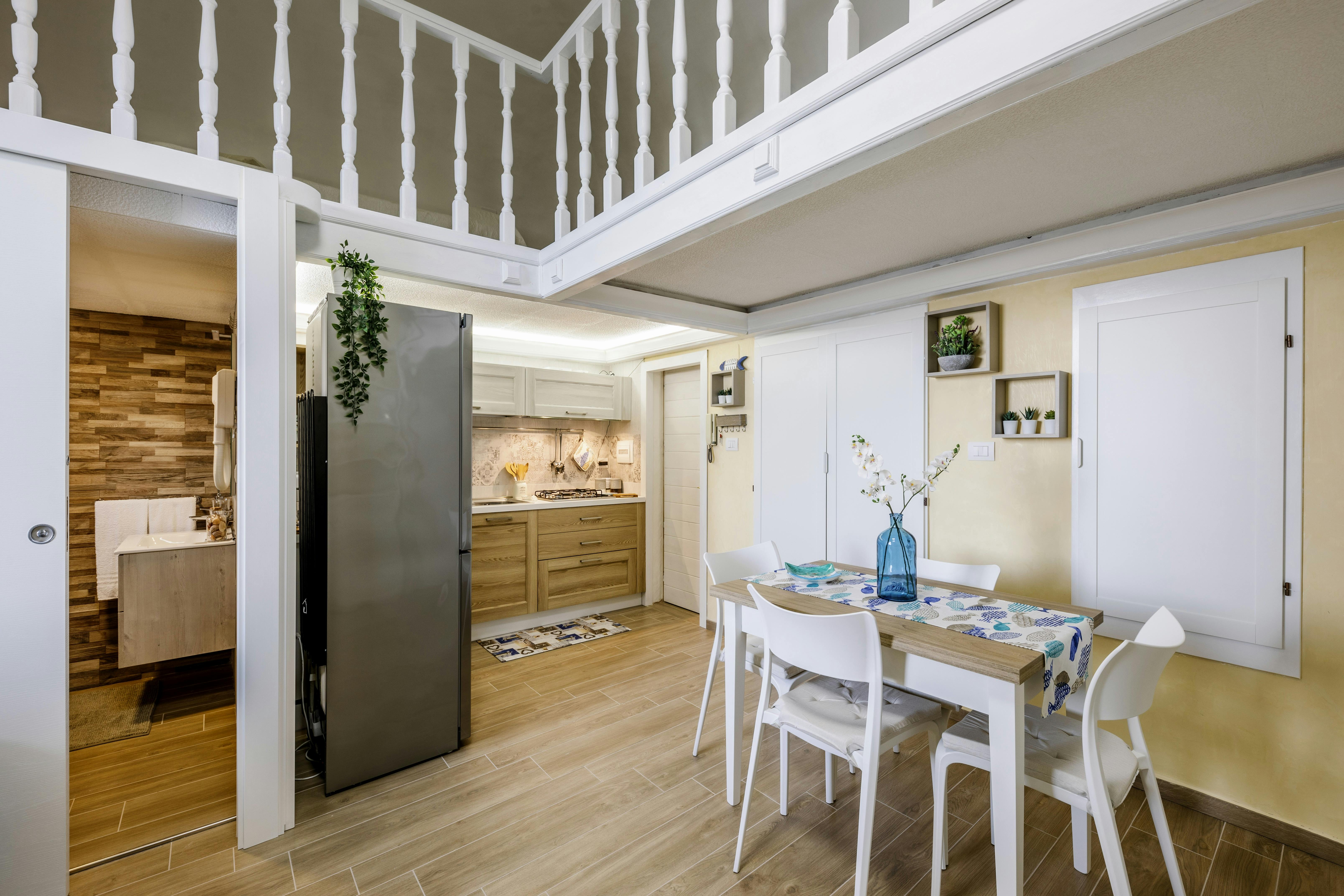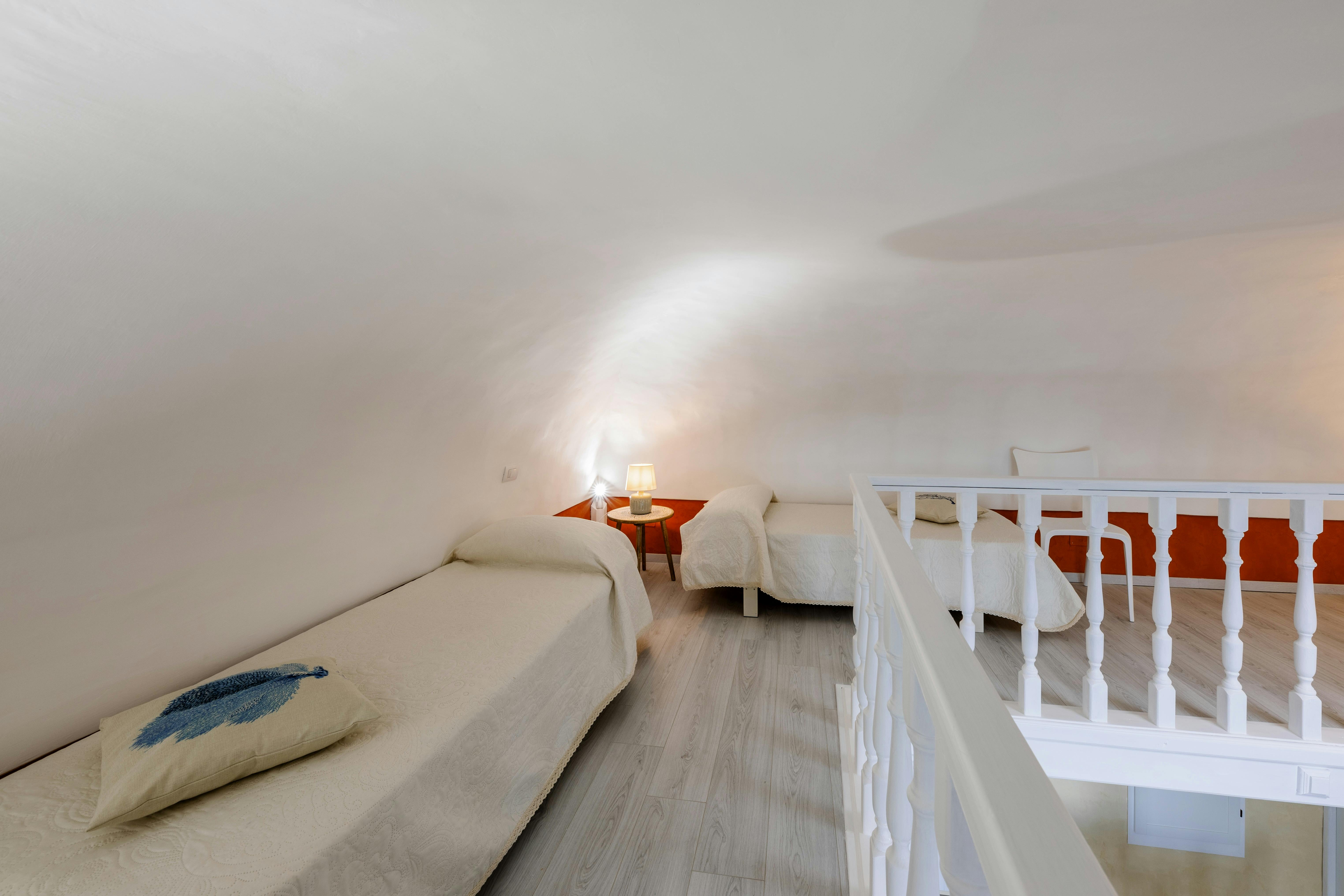 The space consists of a living room with kitchen, bathroom, double bedroom and mezzanine with two single beds. The apartment is completed by a large sea-view balcony, which can be accessed from the bedroom and living room.
